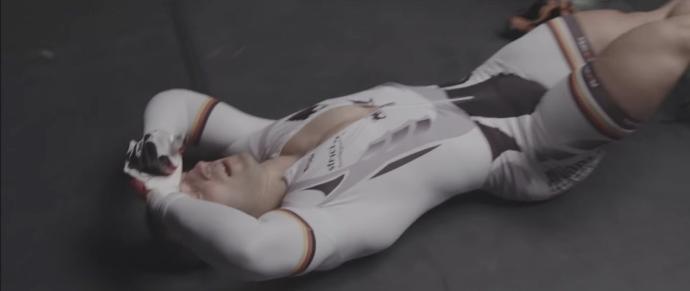 A l’issue de cet effort, on voit l’athlète obligé de s’allonger sur le sol pour récupérer.