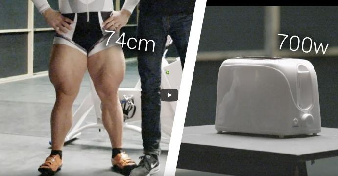 Au prix d’un effort hors norme, Robert Förstemann, un cycliste professionnel, a pédalé pour produire les 700 watts d’électricité nécessaires pour toster une tranche de pain de mie dans un grille pain durant une minute.