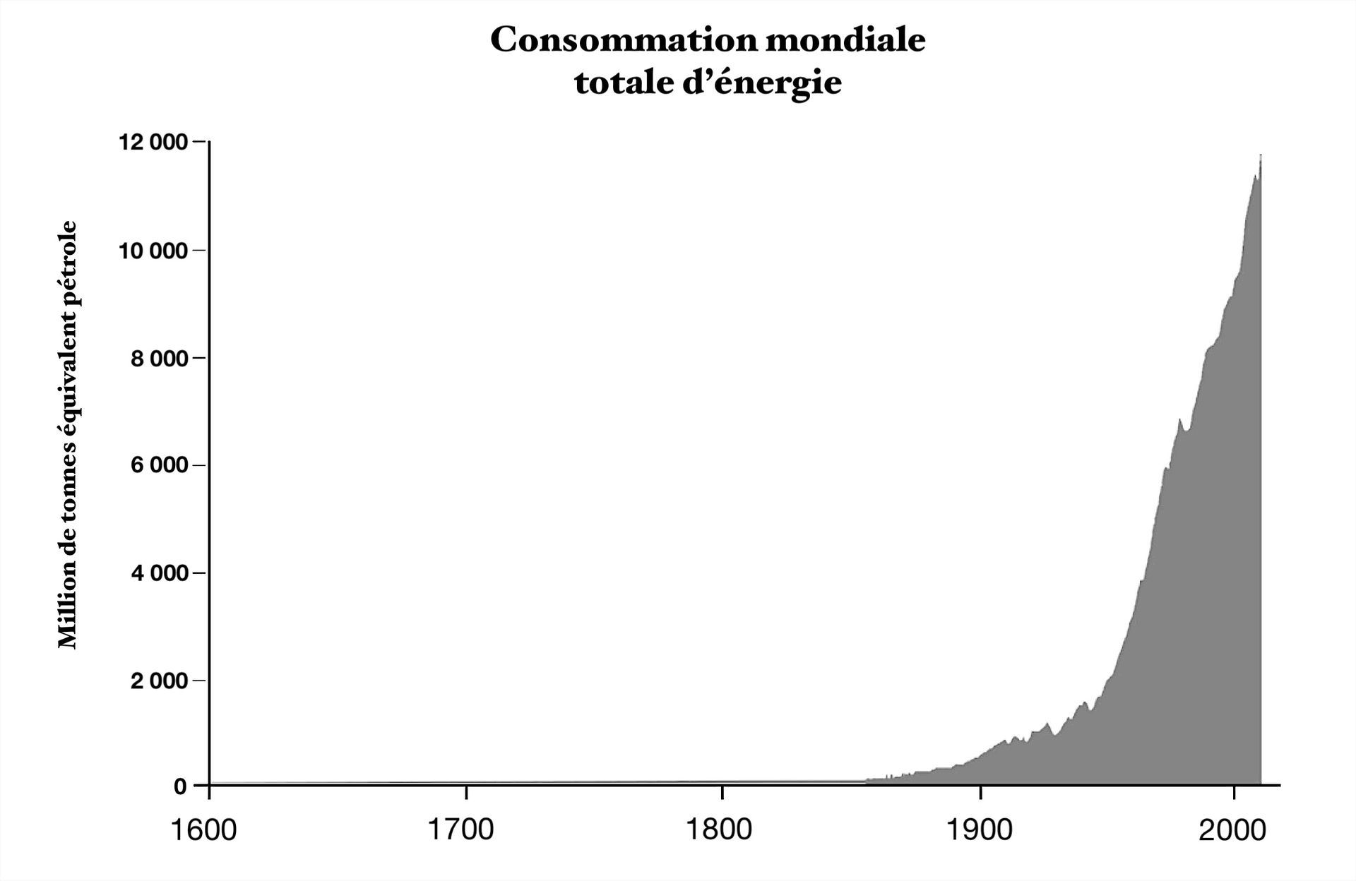 E : Énergie primaire (disponible dans la nature) consommée par les sociétés humaines