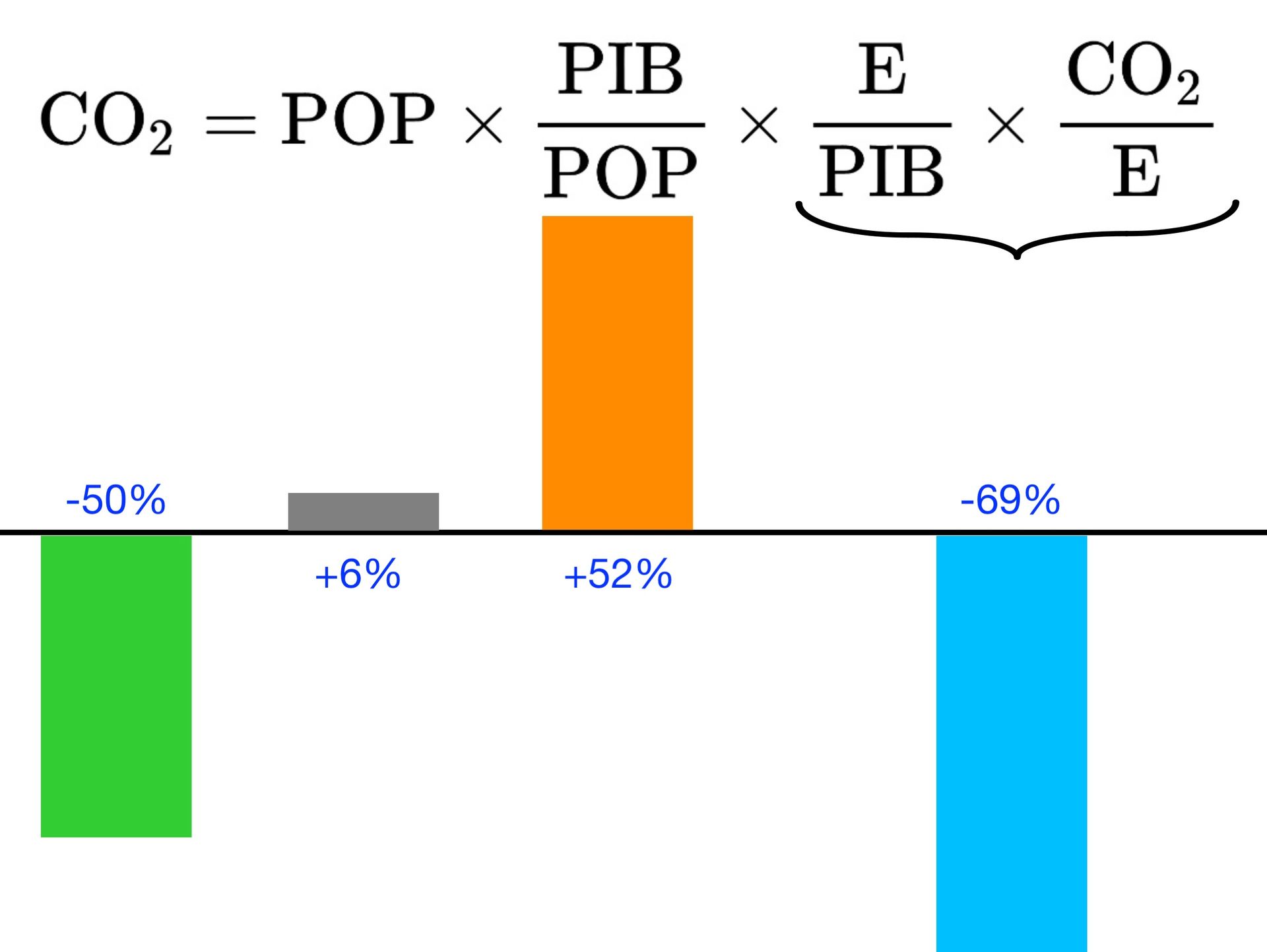 Cet article ne cherche pas répondre à la question du comment atteindre cet objectif, mais plutôt d’essayer d’imaginer les conditions d’un monde avec -50% d’émissions de CO2. C’est là que la relation de Kaya peut nous aider…